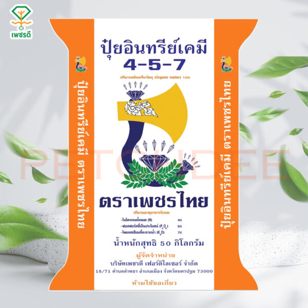 ปุ๋ยอินทรีย์เคมี สูตร 4-5-7 ตราเพชรไทย
